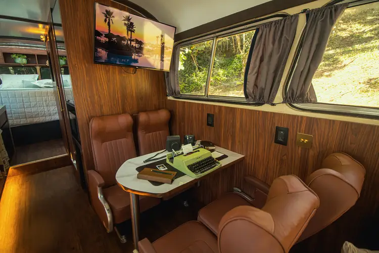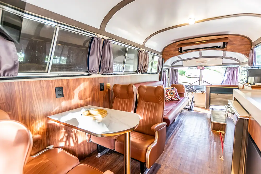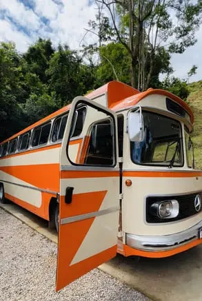 Entre, relaxe e reviva a magia dos anos 70 neste ônibus vintage, onde cada detalhe é uma lembrança.